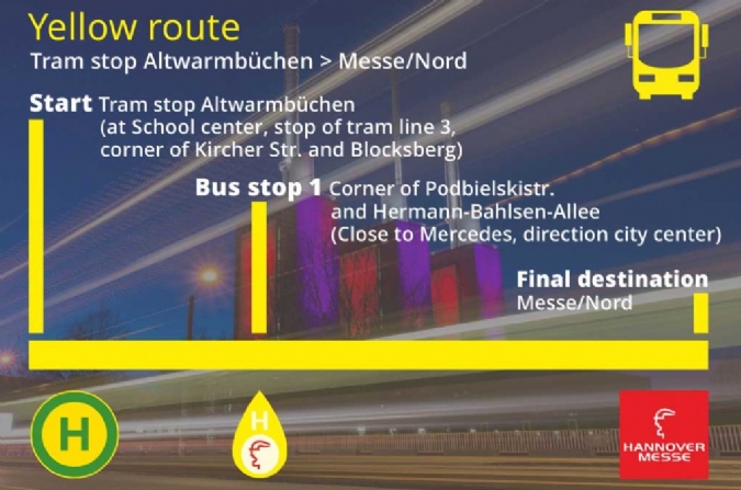 ? 接駁巴士服務(wù)將從周二早上七點(diǎn)開始,返程末班車時(shí)間為晚上八點(diǎn)。該服務(wù)對(duì)于漢諾威工業(yè)博覽會(huì)的展商和觀眾是免費(fèi)的,僅需出示展商和觀眾胸卡即可。