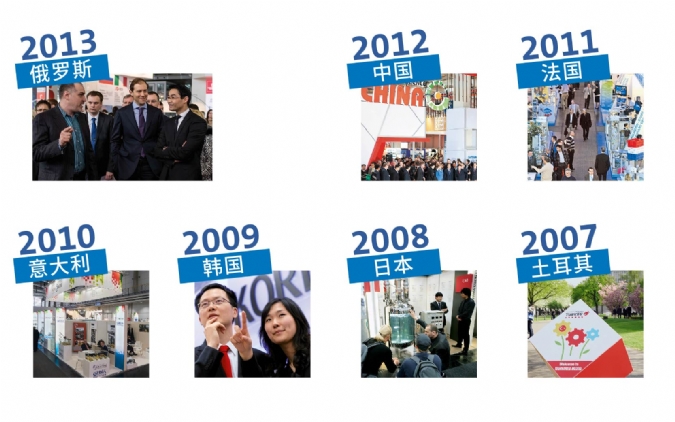 德國漢諾威工業(yè)博覽會的政府間戰(zhàn)略合作平臺舉辦至今,“合作伙伴國計劃” 吸引了包括:土耳其、日本、韓國、意大利、法國、中國、俄羅斯、荷蘭、印度、美國、波蘭、墨西哥、瑞典、印度尼西亞等占據(jù)世界制造業(yè)重要地位的國家前來參與,每屆展覽會的開幕式上,政府高層代表也都蒞臨出席并發(fā)表演講。在漢諾威工博會的世界級舞臺上,國家先進制造業(yè)技術得以展示,國際市場的未來巨大潛力得以成功的呈現(xiàn)。