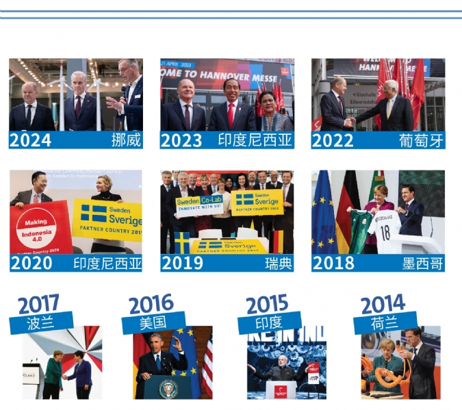 一直以來,德國擁有著全球領先的工業(yè)制造領域的先進技術與產業(yè)鏈,在自身發(fā)展的同時也為全球各個經濟體輸送出優(yōu)質的工業(yè)制造類產品、人才以及技術支持。為了迎合行業(yè)發(fā)展的升級需求,打造更高規(guī)格的交流平臺,“合作伙伴國計劃”應運而生,自此漢諾威工業(yè)博覽會成為了各個國家在其本國以外參與的最高規(guī)格,參與度最大的工業(yè)制造類貿易展。