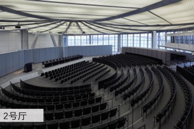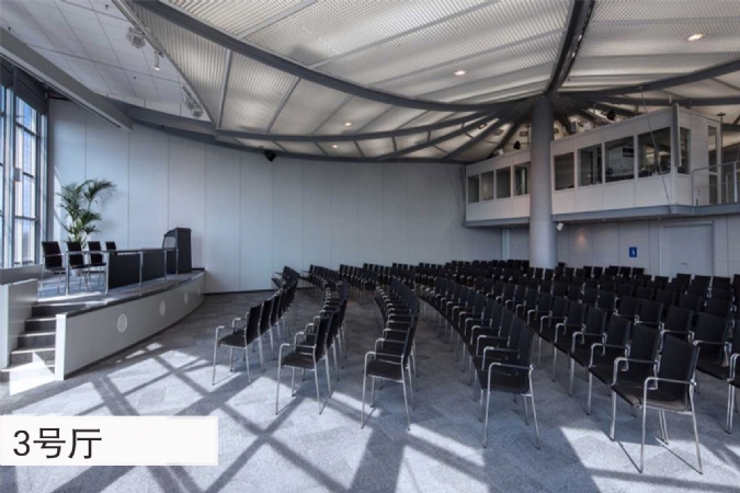 1號(hào)廳 擁有1,260平方米(約13,600平方英尺)的空間,可容納多達(dá)1,140名觀眾,是一個(gè)高度靈活的多功能禮堂,非常適合舉辦大型活動(dòng)。展廳中可根據(jù)需要調(diào)暗的落地窗,先進(jìn)的會(huì)議設(shè)備和兩個(gè)獨(dú)立的入口是1號(hào)廳的主要優(yōu)點(diǎn)。 |